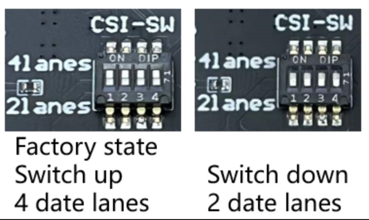 在V2.2版本中,这里有一个CSI通道切换器。确认切换器在4通道一侧。再其它版本中,移除了此切换器,默认4通道全部使能。