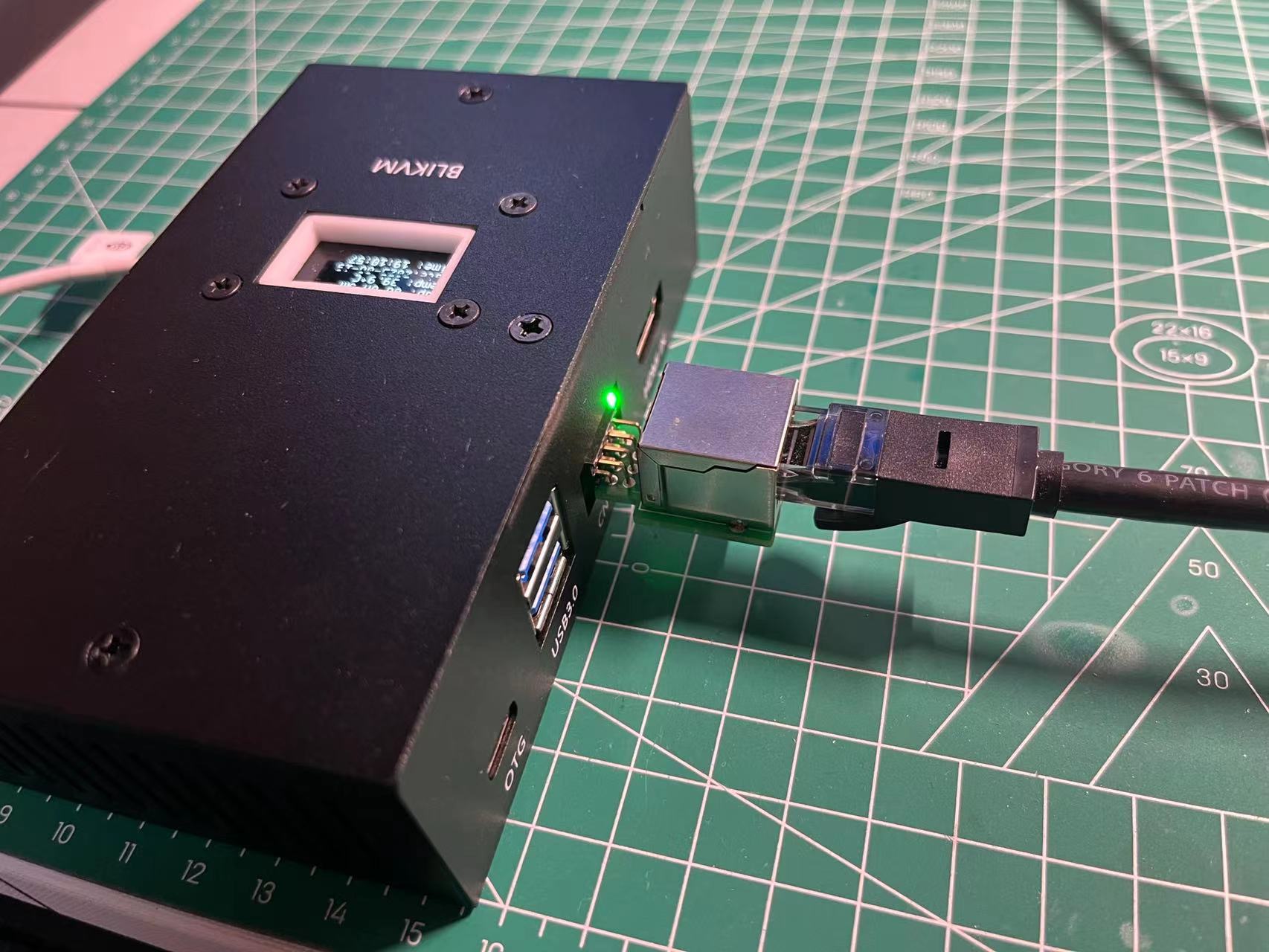 - Connect Ethernet to the network and PWR IN to the BLIKVM power supply.